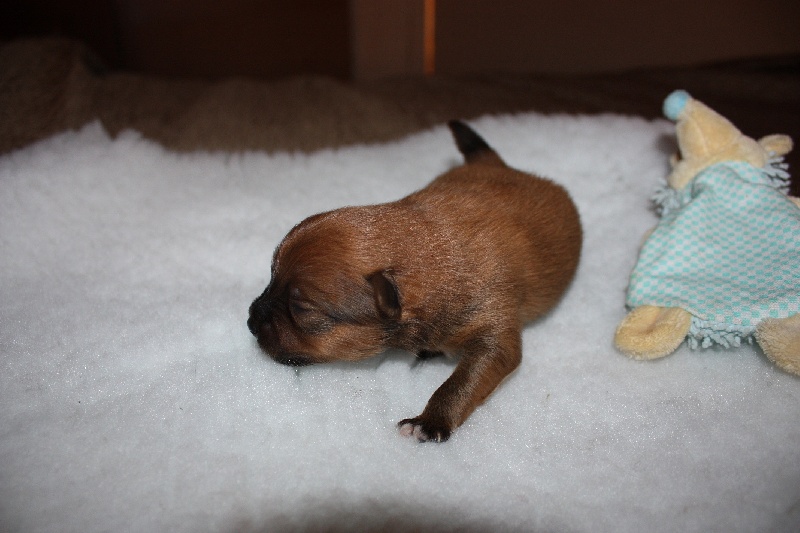 Il a " moins de caractère" que son frère! Beaucoup moins tétu il est souvent dans les pieds, il sera proche de son maitre!!! Trés joueur également il passe son temps a chahuter avec sa maman ou son frère sur lequel il n'a jamais le dessus! Lui aussi devrai etre un peu clown :)